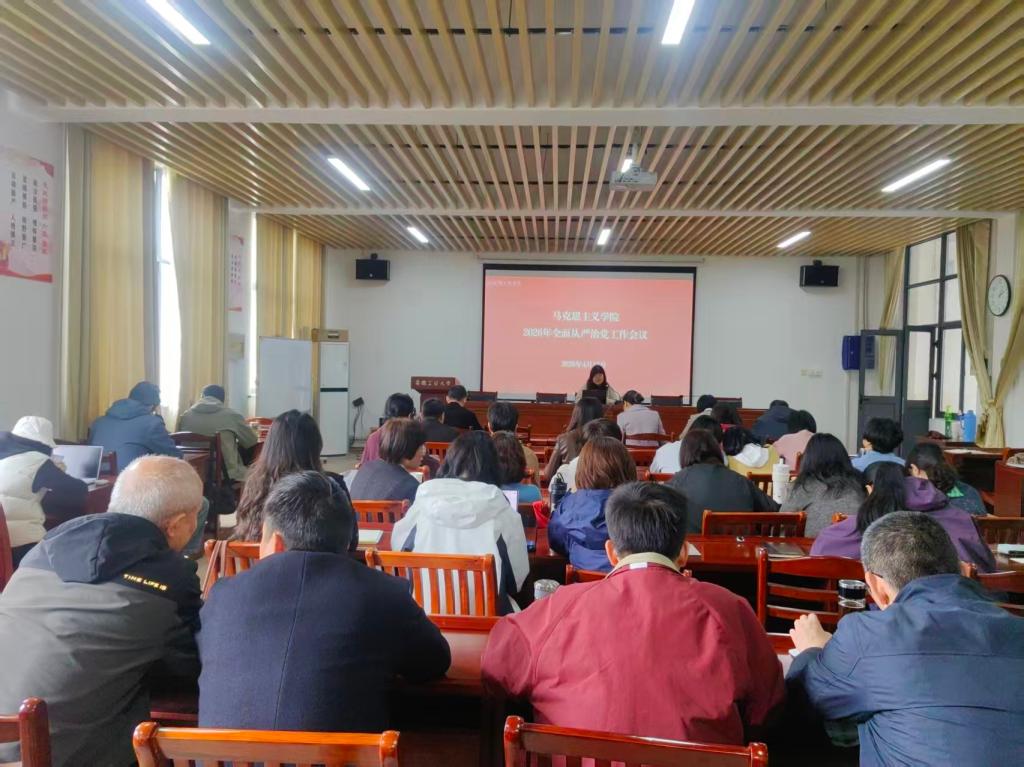 4月13日下午,马克思主义学院在学院325学术报告厅召开2026年全面从严治党工作会议,会议由学院党委书记徐惠主持,学院全体教职工参会。