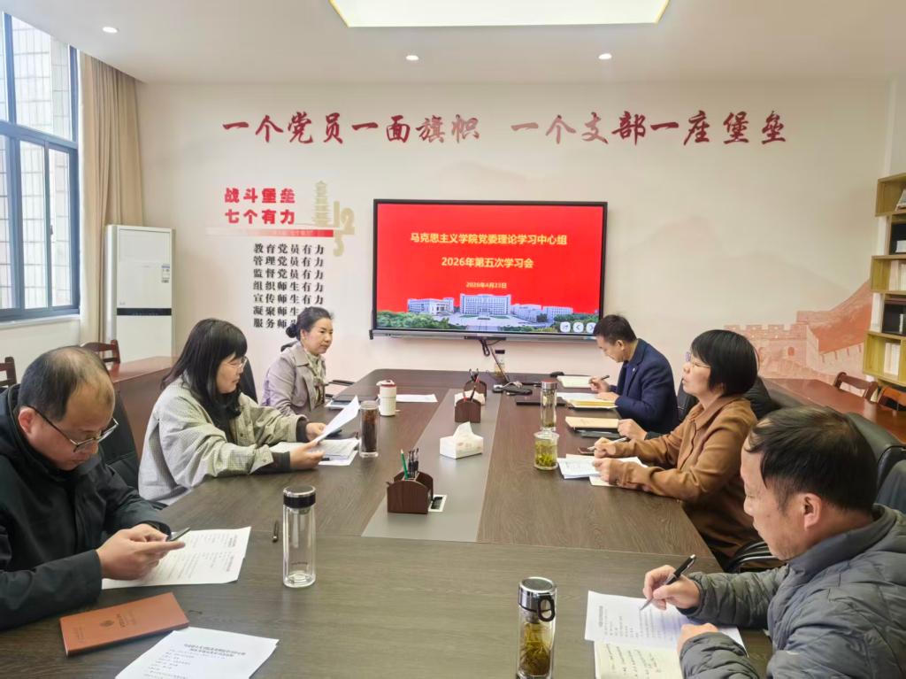 4月23日上午,马克思主义学院党委理论学习中心组在学院324会议室召开2026年第五次学习会,学院党委委员参加会议,会议由学院党委书记徐惠主持。
