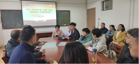 2026年4月13日下午,“纲要”教研室举行春季学期第三次集体备课会。此次会议由“纲要”教研室主任王玉坤主持,教研室全体教师与会。