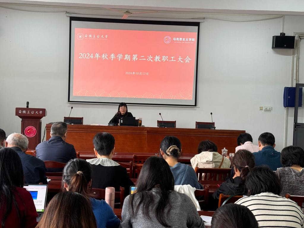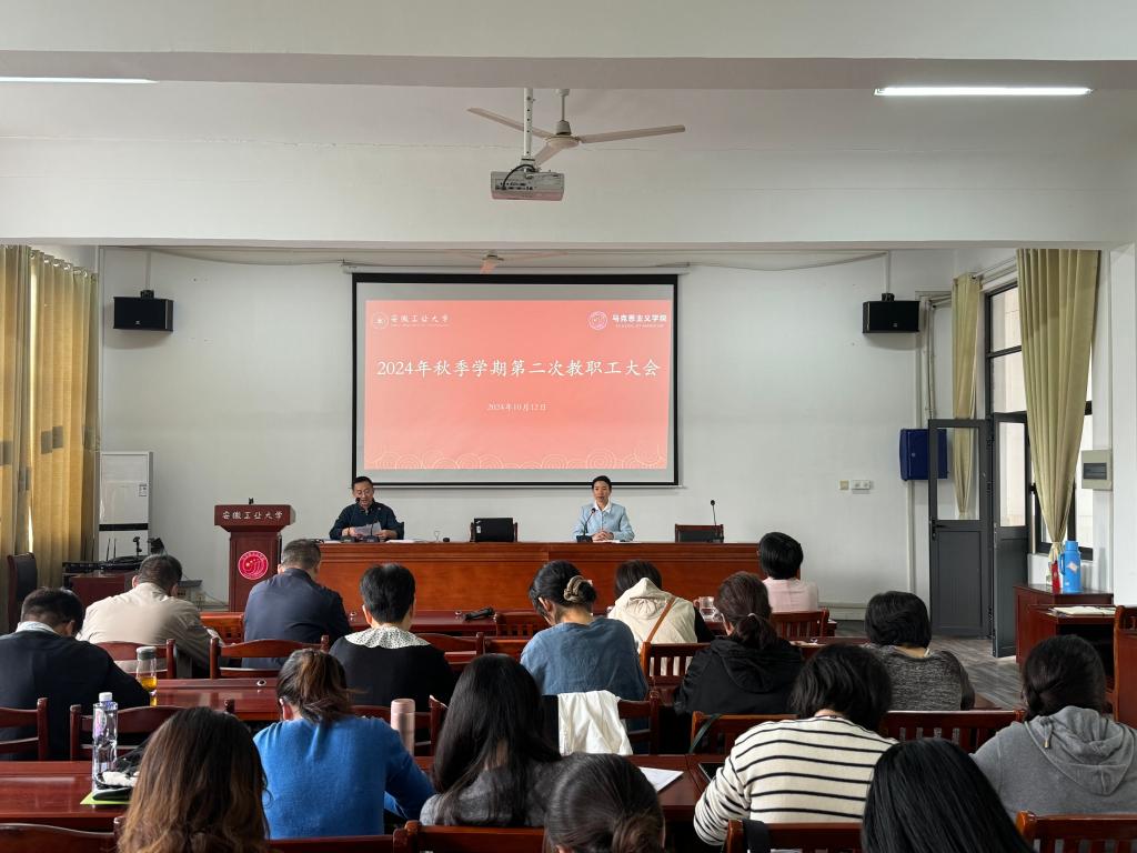 10月12日上午,马克思主义学院在学院楼325学术报告厅召开2024年秋季学期第二次教职工大会,会议由学院党委书记徐惠主持,学院全体教职工参会。