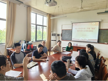 2025年5月26日上午,“纲要”教研室举行春季学期第八次集体备课会。此次会议由“纲要”教研室主任王玉坤主持,教研室全体教师与会。
