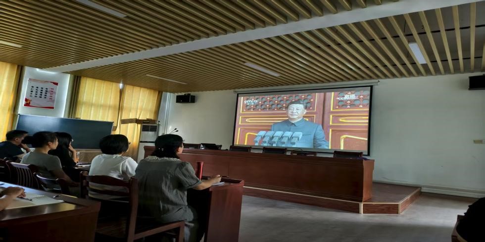 9月3日上午,马克思主义学院党政领导班子与研究生党支部党员一起集中观看纪念中国人民抗日战争暨世界反法西斯战争胜利80周年大会,深入学习贯彻习近平总书记系列重要讲话精神,组织开展专题学习和交流座谈活动。