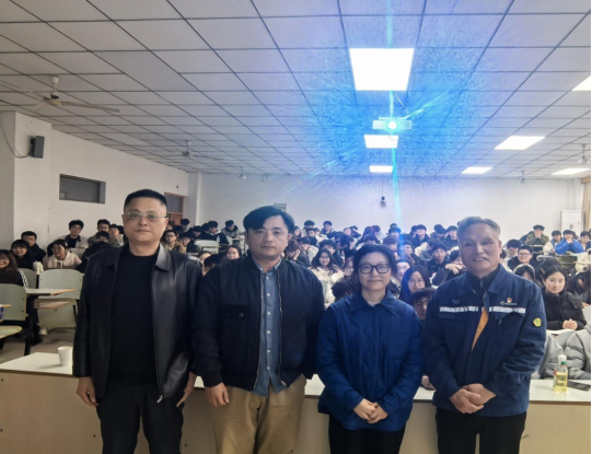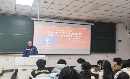 为深入学习贯彻习近平总书记关于新时代思政课建设的重要指示精神,推动“大思政课”与行业实践深度融合,2026年3月19日下午,马克思主义学院主办的“佳山思政讲堂”第44期“‘理’论思政课——英模·大师进思政课堂”报告会在佳山校区教三南202教室举行。马克思主义学院副院长倪松根,“思想道德与法治” 教研室、机械工程学院部分教师及 200 余名大学生代表共同参加本次活动。