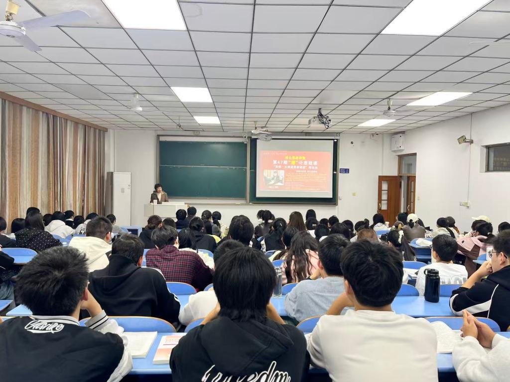 为深入学习贯彻习近平总书记关于“大思政课”建设的重要指示批示精神,推动“思政小课堂”与“社会大课堂”深度融合,2026年4月9日下午,马克思主义学院主办的“佳山思政讲堂”第47期“‘理’论思政课——英模·大师进思政课堂”报告会在佳山校区教三北112教室举行。马克思主义学院副院长倪松根,“毛泽东思想和中国特色社会主义理论体系概论” 教研室教师及 100 余名大学生代表共同参加本次活动。